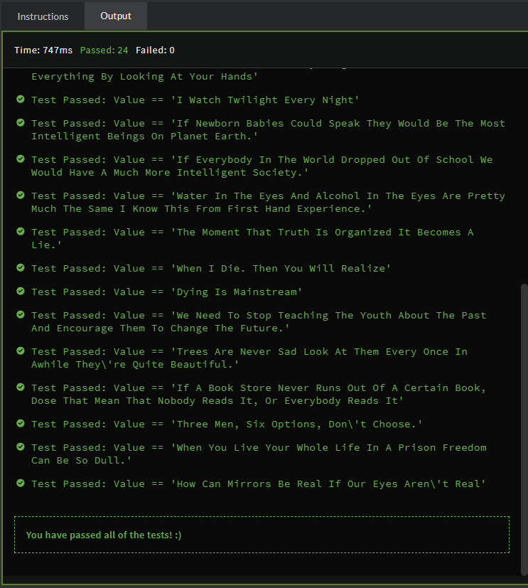 문제) www.codewars.com/kata/5390bac347d09b7da40006f6/train/javascript Codewars: Achieve mastery through challenge Codewars is where developers achieve code mastery through challenge. Train on kata in the dojo and reach your highest potential. www.codewars.com 내가 푼 답) String.prototype.toJadenCase = function () { var strs = this.split(' '); var result_strs = []; strs.forEach((str) => { result_strs.p..