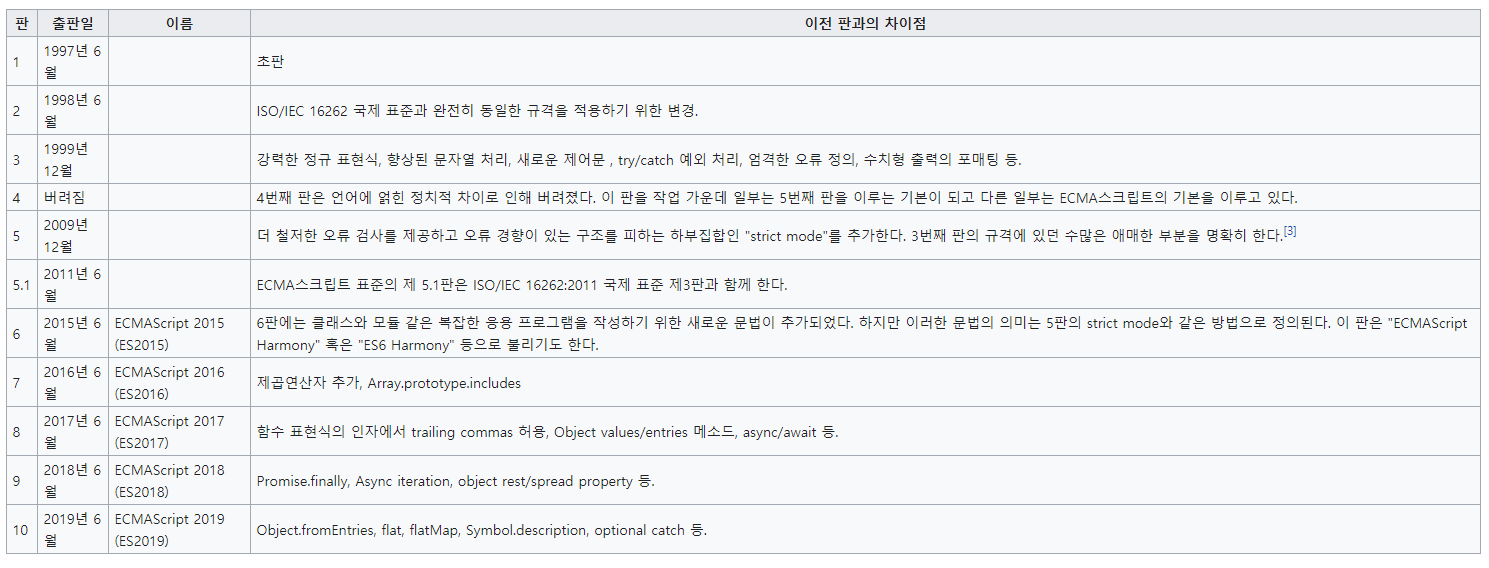 Strict mode (엄격모드) - ECMAScript 5에서 소개됨 - JavaScript의 제한된 버전을 선택하여 암묵적인 느슨한 모드(Sloppy mode)를 해제하기 위한 방법 특징 - 엄격모드를 지원하지 않는 브라우저(Internet Explorer 10 버전 이하)에서는 엄격 모드의 코드가 다른 방식으로 동작 (그렇기 때문에 엄격 모드에 의존하면 안됨) - 엄격모드의 code와 비엄격모드의 code는 공존 가능 => 엄격 모드를 일부만 선택하는 것이 점진적으로 가능하게 됨 - 전체 스크립트 또는 부분 함수에 적용 가능 - {} 괄호로 묶여진 block 문, context에 적용되지 않음 엄격모드 사용 시 JavaScript symantic의 변화 1. 기존에 조용히 무시되던 에러들이 thro..
